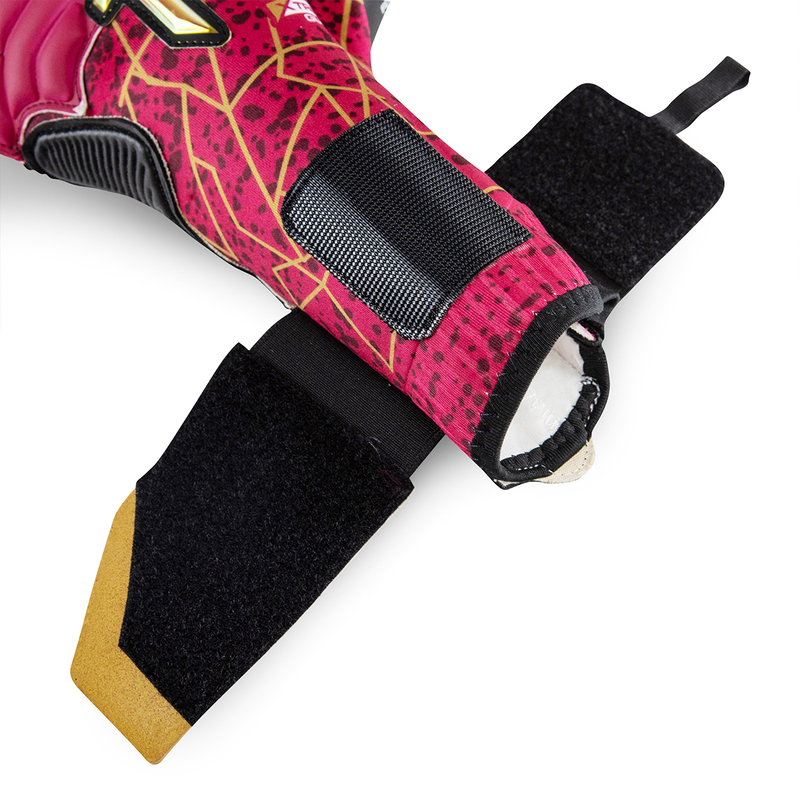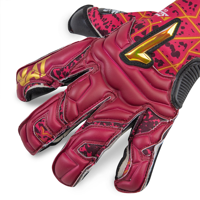 Esta Joya es una edición especial para conmemorar la Copa Mundial de Qatar. Elegimos a uno de los modelos más icónicos de la marca en los últimos tiempos para que nos represente en esta tan importante competencia internacional. Combinación elegante cuyos colores representan realeza y lujo, que podrás sentir en tus manos. Dorso: En la zona superior cuenta con una aplicación de látex natural con volumen para dar cuerpo y protección, montado sobre neopreno. Es un guante ligero, pero con sensaciones de estar bien armado. Corte: Ergo-Roll Palma: Látex X-W&G (Xtreme Wet and Grip) formulación con excelente desempeño, buena resistencia con un increíble agarre, que mejora su rendimiento en condiciones de agua. Se recomienda mojar las palmas antes de usarse para mejorar la experiencia. Cierre: neopreno con relieves en alta frecuencia, abertura de licra en la zona lateral externa para facilitar la entrada y salida de la mano. Cintillo de doble anclaje para un mejor ajuste y aplicación de látex en la zona baja de la palma que funciona como una extensión para mayor área de sujeción.
