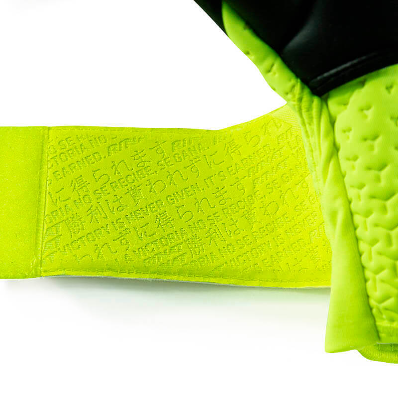 Palma: Super Nova Grip, Látex Alemán de última generación que brinda un agarre fuera de este mundo, adicionado con Grip-sparks que potencializan e incrementan notoriamente la adherencia desde el primer uso lo que nos garantiza un máximo desempeño. 3.5mm de látex + 3 mm de PU. Aplicaciones de látex entre los dedos para mayor área de sujeción. (Negro / Verde)