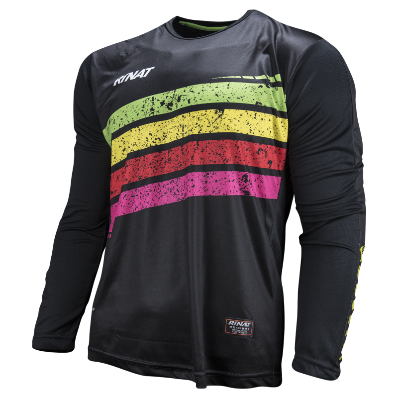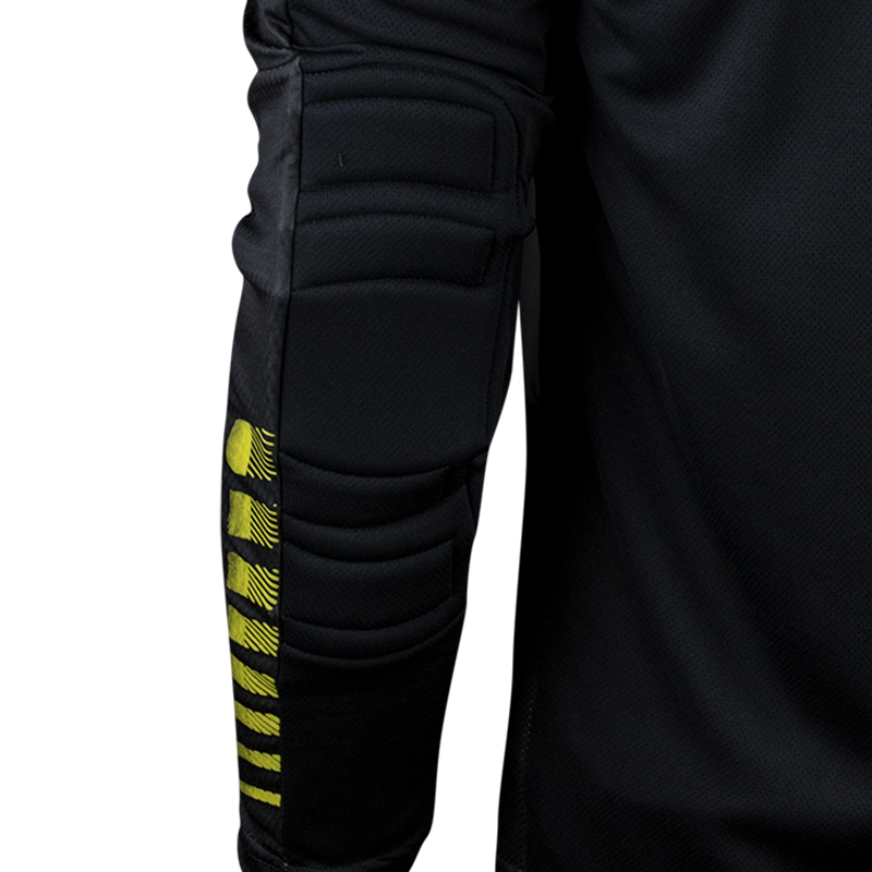 Corte ajustado para lucir atlético e imponente en la portería. Acojinamiento en codos y antebrazos que brindan protección en principales zonas de impacto.