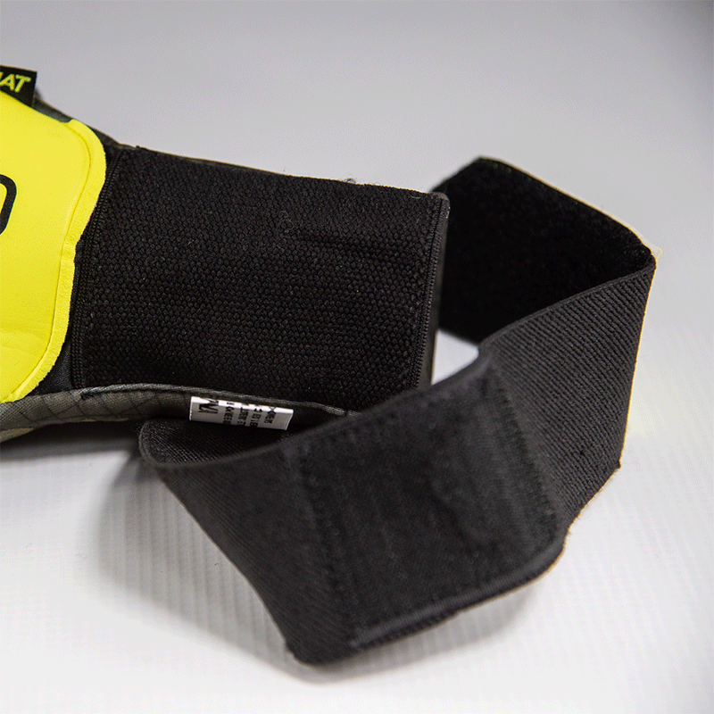 Cierre: Muñequera de textil y elástico para brindar mayor soporte alrededor de la muñeca. Cintillo elástico 360 Wrist Wrapp que hace la función de vendaje, con sección personalizable de textil.