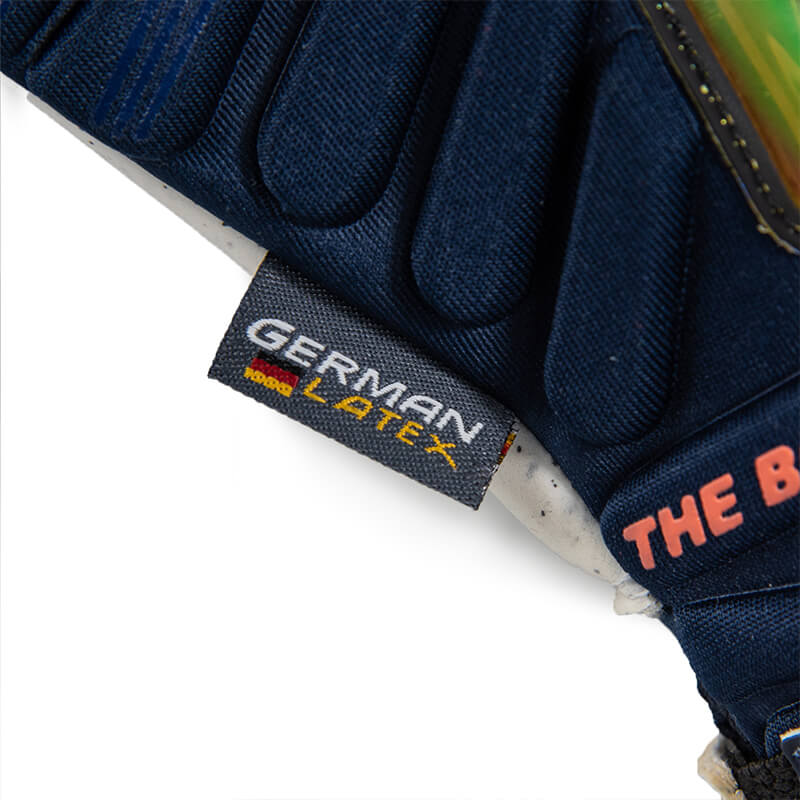 Palma: Látex alemán Omega grip® en 3mm que ofrece un agarre inmejorable, excelente durabilidad, muy buena amortiguación y un gran desempeño.