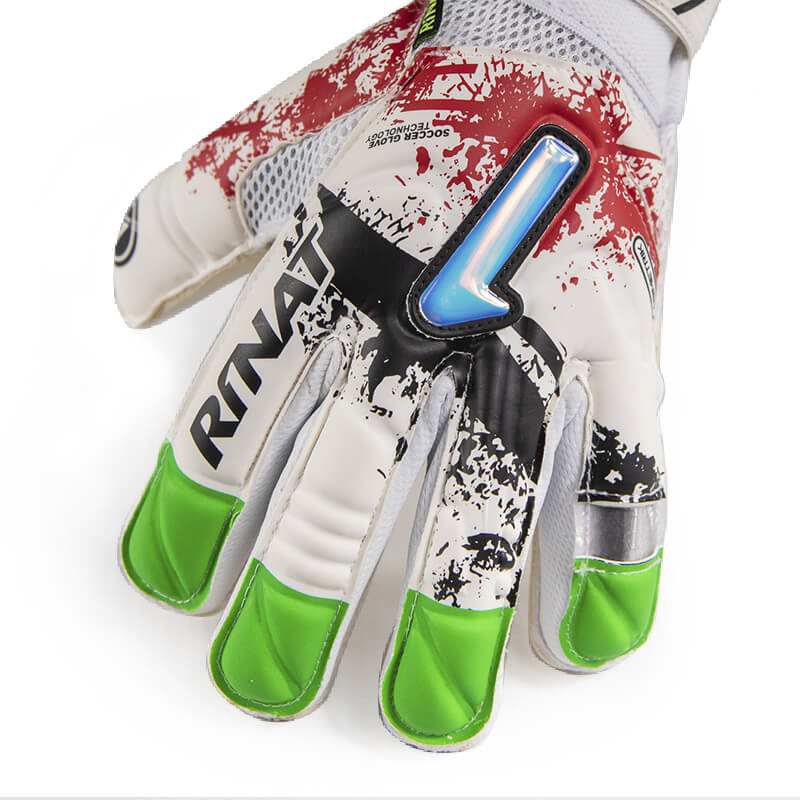 Dorso: Látex sintético de gran suavidad y comodidad. Relieves en alta frecuencia para dar volumen, cuerpo y amortiguación. Montado en una base textil transpirable que mantiene el interior del guante fresco.