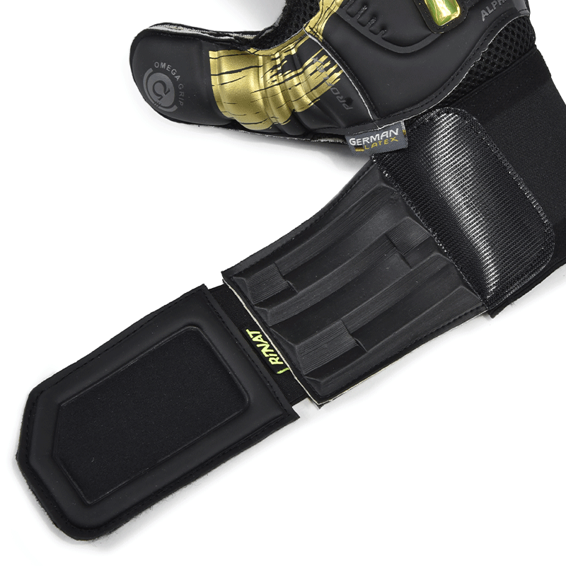 Palma: La palma es apiezada para dar mayor libertad de movimiento, más comodidad, mas ergonomía y mejor transpiración al interior del guante. Látex Omega Grip en la zona de los dedos para tener un agarre excepcional y en la zona de la palma de la mano empleamos el látex omega resistance para resistir la abrasión del terreno y la fricción ocasionada por los lances.