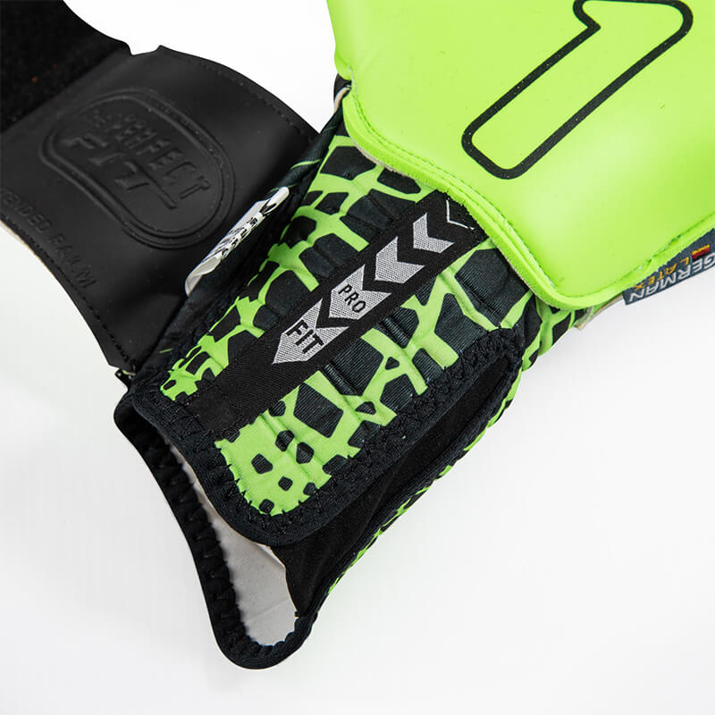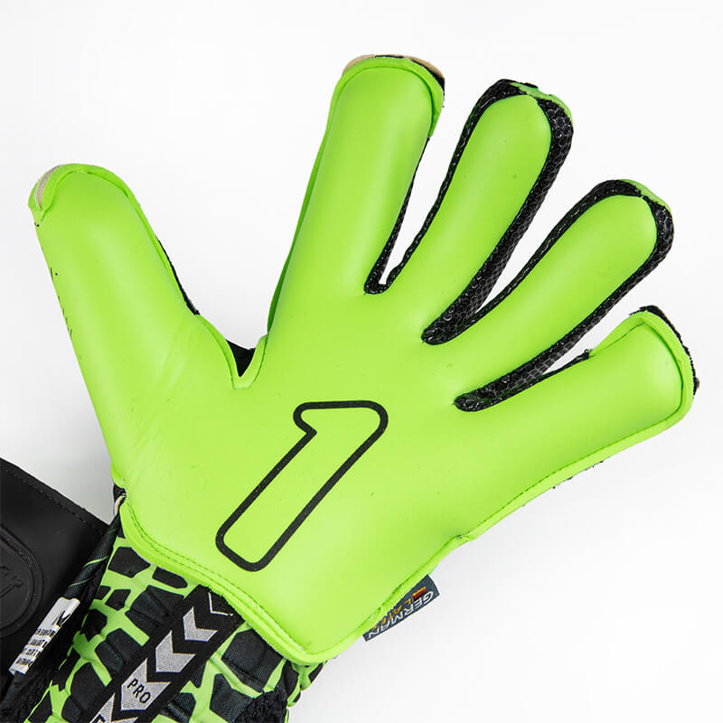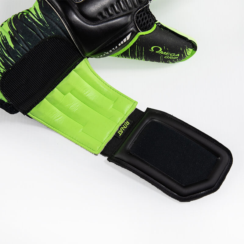 Corte: Híbrido, Negative - Roll. El látex de la palma envuelve casi por completo los dedos índice y meñique, mientras que los dedos medio y anular cuentan con corte negativo para dar mayor ajuste y seguridad, especialmente diseñado para aquellos que buscan máxima sensación con el balón.