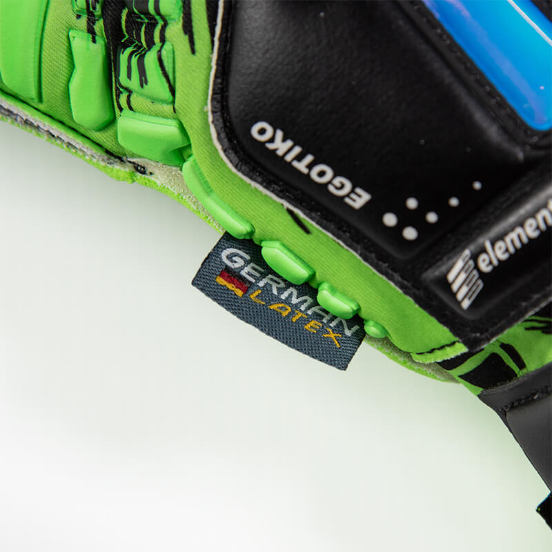 Palma: Látex alemán Omega Grip® en 3mm que ofrece un agarre inmejorable, excelente durabilidad, muy buena amortiguación y un gran desempeño. Aplicamos gel antiderrapante en la cara interna de la palma para evitar el guante se mueva de su lugar.