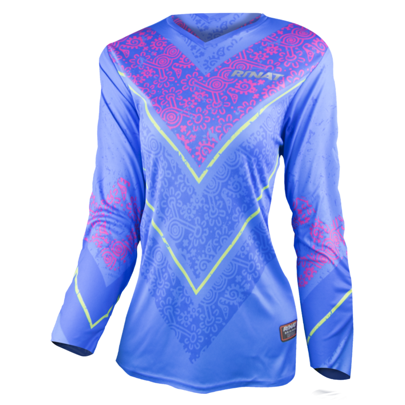 Cushioning on elbows and forearms. Sublimated front, back and sleeves..