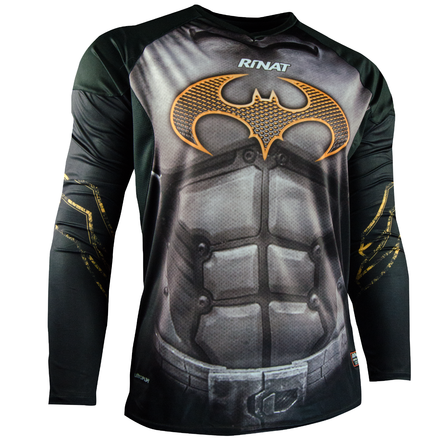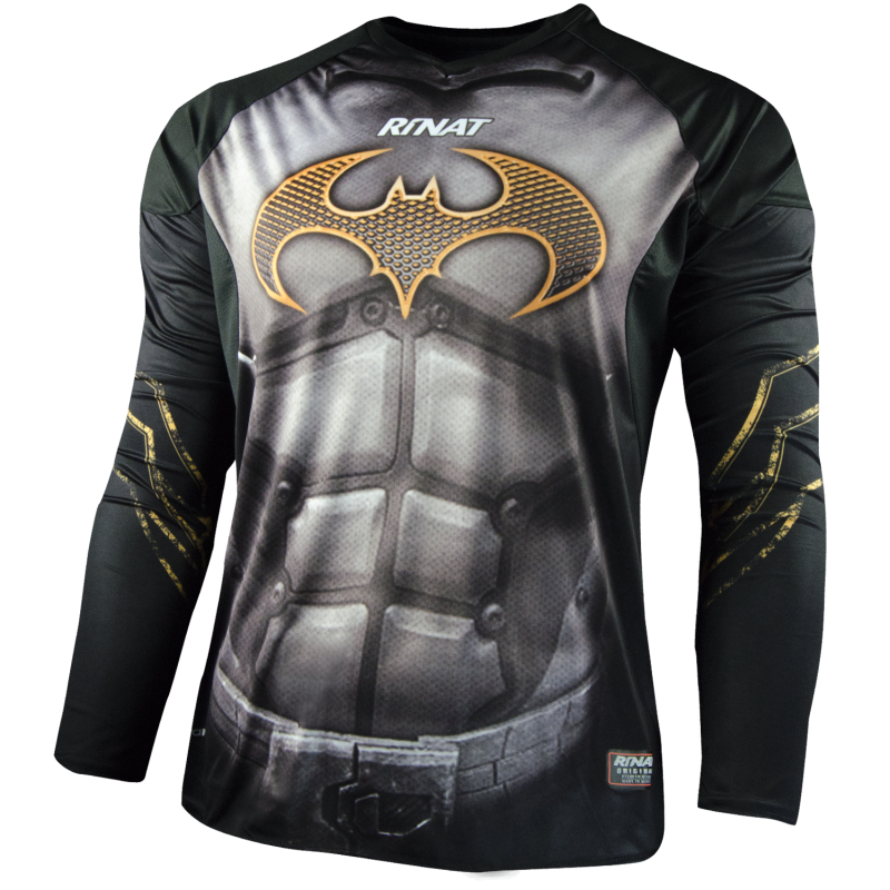 Cushioning on elbows and forearms. Sublimated front, back and sleeves..