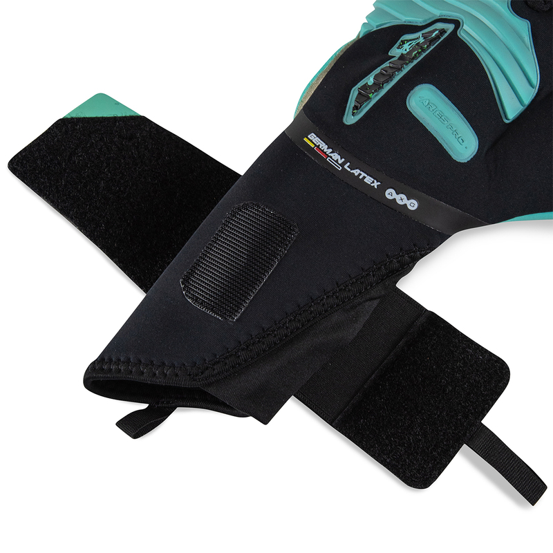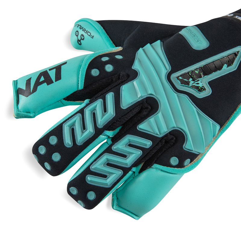 Su corte totalmente innovador te brindara nuevas sensaciones en tus manos. Creado para las nuevas generaciones de Cancerberos que buscan la más alta tecnología. Con su diseño elegante y agresivo harán que te impongas en la portería y logres el máximo desempeño de tus habilidades. Dorso: Injertos de goma que brindan cuerpo, diseño y protección, ubicados en las principales zonas de impacto. Todo montado sobre neopreno altamente transpirable. Corte: Novedoso y sumamente técnico. Los dedos medio y anular son rollfinger con cerrado negativo y gran ergonomía, además cuenta con puntos de flexión que facilitan la movilidad. Extensión de látex con terminación angular en la punta de los dedos formada con el tipo de costura que se aplica en el proceso de fabricación del guante, buscando una apariencia y sensación innovadora. Este tipo de corte en las yemas de los dedos te proporcionará zonas adicionales de grip mientras que ayuda a retrasar el desgaste natural del látex en la punta de los dedos. Palma: Látex alemán AXG® de última generación desarrollado en Alemania especialmente para Rinat para garantizar un extreme grip aún en condiciones lluviosas. Tiene un inmejorable desempeño, balance perfecto entre agarre top y resistencia, lo mejor qué hay en látex de gama alta para mojado. Látex alemán X-Wet & Grip, Nueva formulación de última generación desarrollada para garantizar un agarre extremo aún en condiciones lluviosas. Tiene un gran desempeño, balance perfecto entre grip top y buena resistencia, de las mejores opciones qué hay en látex de gama alta para condiciones mojadas. Cierre: Abertura con licra que facilita la entrada de la mano al guante. Cintillo de doble anclaje que brinda 2 puntos de neopreno con fijación a la muñequera, garantizando mayor firmeza y ajuste. Sección látex estratégicamente colocada como una extensión de la palma para brindarte áreas adicionales de grip.