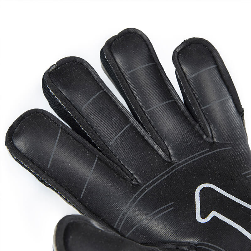 Dorso: Látex sintético de gran suavidad y comodidad. Relieves en alta frecuencia para dar volumen, cuerpo y amortiguación. Montado en una base textil transpirable que mantiene el interior del guante fresco.