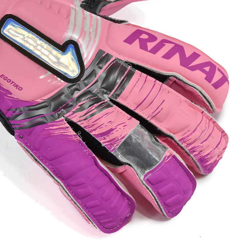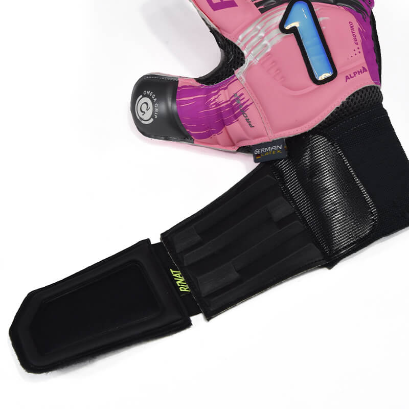Palma: La palma es apiezada para dar mayor libertad de movimiento, más comodidad, mas ergonomía y mejor transpiración al interior del guante. Látex Omega Grip en la zona de los dedos para tener un agarre excepcional y en la zona de la palma de la mano empleamos el látex omega resistance para resistir la abrasión del terreno y la fricción ocasionada por los lances.