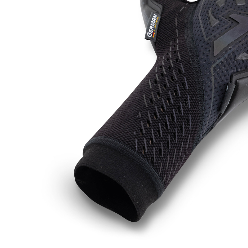 Cierre: STRAPLESS, desarrollado para que no sea necesario un cintillo para fijar, haciéndolo así más práctico y cómodo. El Breathex se sitúa en el antebrazo cubriendo y ajustando la zona de la muñeca, en la entrada contamos con un puño de elástico para ajustar el guante y evitar se mueva de su lugar.