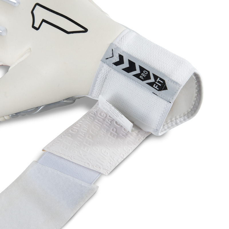 Es un guante armado y ceñido, sumamente cómodo y con sensaciones y características de ser un guante de gama alta. Dorso: Aplicación de Látex frecuenciado sobre una base de textil transpirable con diseño en tecnología de frecuencia, la aplicación del dorso está cerrada en costura negativa en su totalidad. En la parte interna se implementó un forro o capa textil que nos da una sensación de suavidad y confort superior. Corte: Negativo con ergonomía muy marcada para un mejor fit y mayor comodidad. El pulgar está construido mediante una aplicación independiente que después se une a la aplicación del dorso esta generado en corte negativo en su totalidad Palma: Látex Super Softy XP, buen desempeño con un buen grip. Closure: muñequera que fusiona elástico en la zona baja de la palma y un textil flexible y transpirable por la zona del dorso. Cintillo compuesto por 2 piezas unidas por una aplicación elástica para ajustar según la necesidad. Ventanilla personalizable y aplicación de goma para una mejor sujeción.