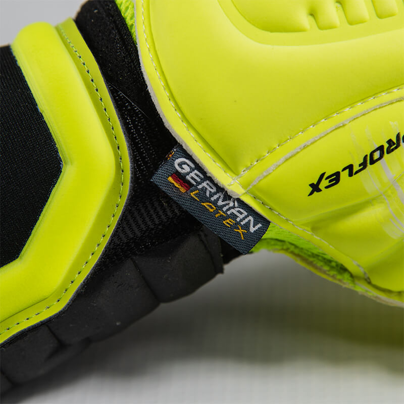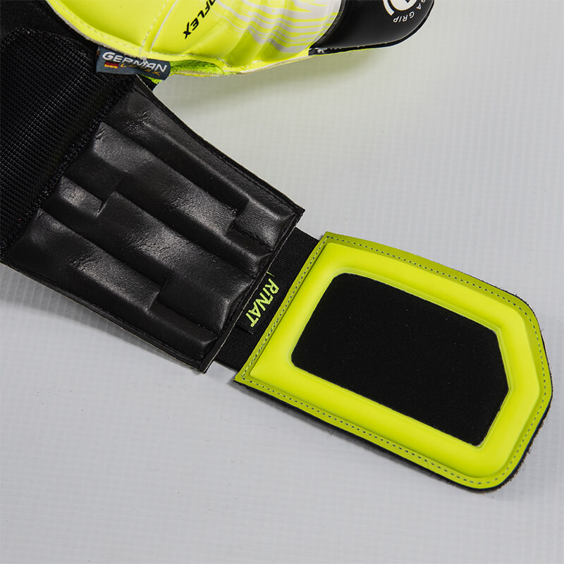 Palma: La palma es apiezada para dar mayor libertad de movimiento, más comodidad, mas ergonomía y mejor transpiración al interior del guante. Látex Omega Grip en la zona de los dedos para tener un agarre excepcional y en la zona de la palma de la mano empleamos el látex omega resistance para resistir la abrasión del terreno y la fricción ocasionada por los lances.