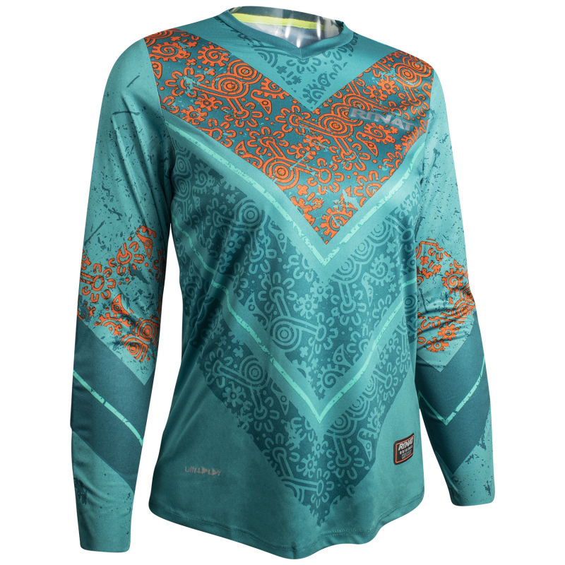 Cushioning on elbows and forearms. Sublimated front, back and sleeves..